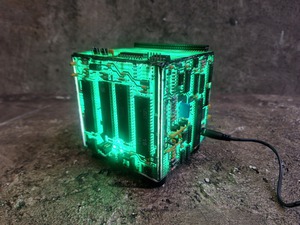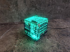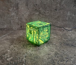 2015Kubus uit gerecyclede printplaten met led-verlichting, made for ARTZNSTD 2015 op het Hembrugterrein.